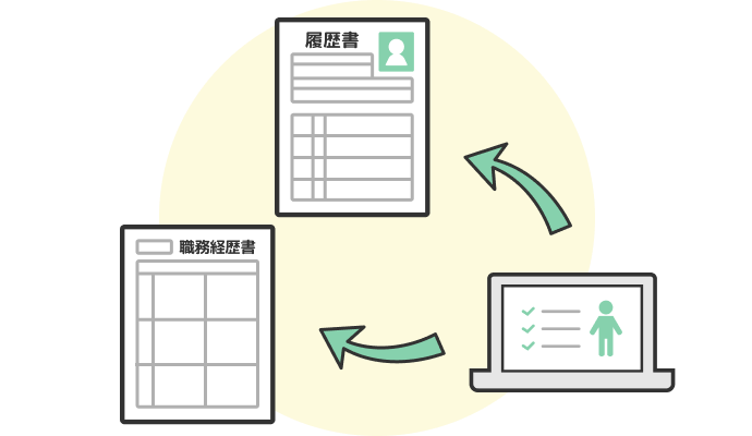 履歴書等をスムーズに作成できる作成したジョブ・カードの内容を転記して、履歴書・職務経歴書などをスムーズに作成することができます。